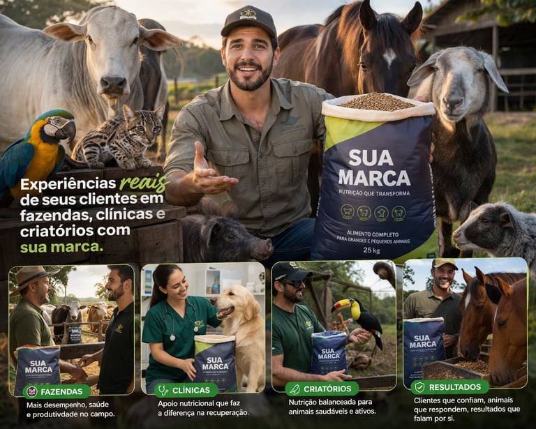 Experiências reais de seus clientes em fazendas, clínicas e criatórios com sua marca.